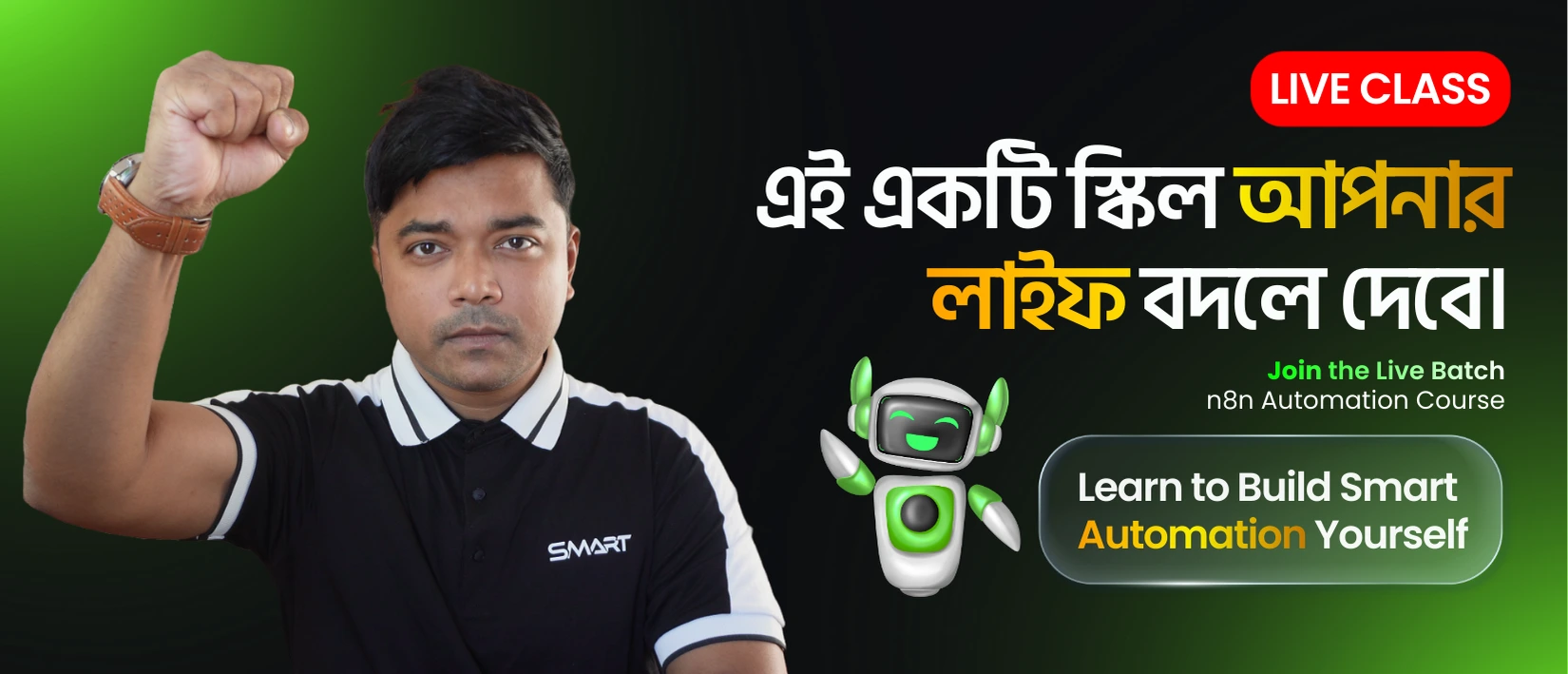 • OUTCOME: ছাত্র n8n dashboard ব্যবহার করতে পারবে + JSON কী তা বুঝবে + প্রথম workflow রান করতে পারবে।